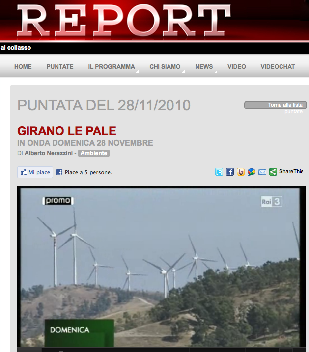 Girano le pale: Report 28 novembre 2010 RAI 3