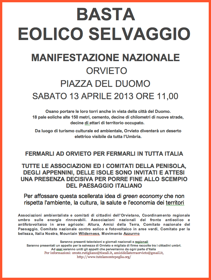 Manifestazione contro eolico selvaggio a Orvieto Condividi: Fai clic per condividere su Facebook (Si apre in una nuova finestra) Facebook Fai clic per condividere su X (Si apre in una nuova finestra) X Fai clic per inviare un link a un amico via e-mail (Si apre in una nuova finestra) E-mail